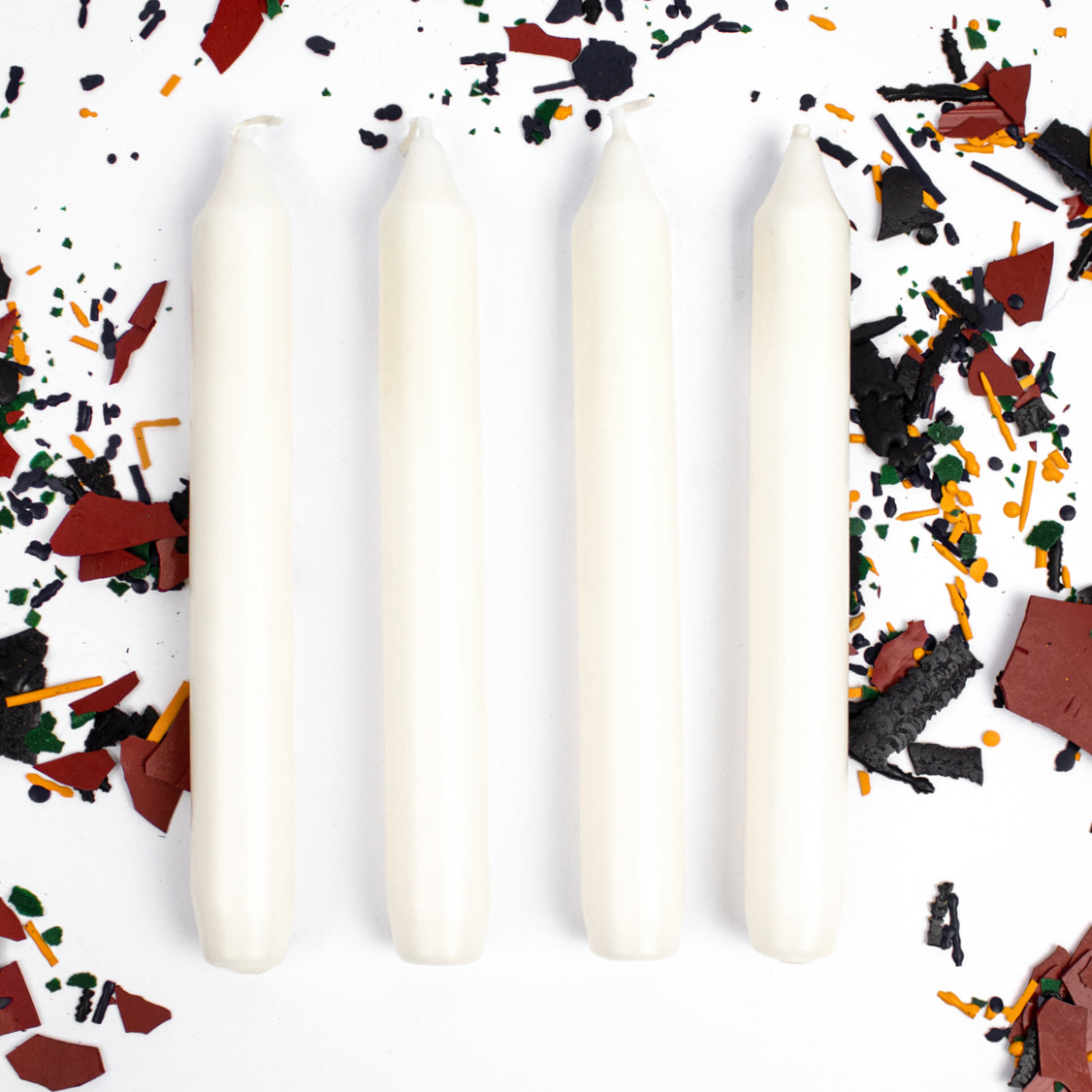 Mit unserem 4er Set weißer Kerzen kannst du direkt loslegen! Die Kerzen sind 17 cm hoch und 2,5cm im Durchmesser.