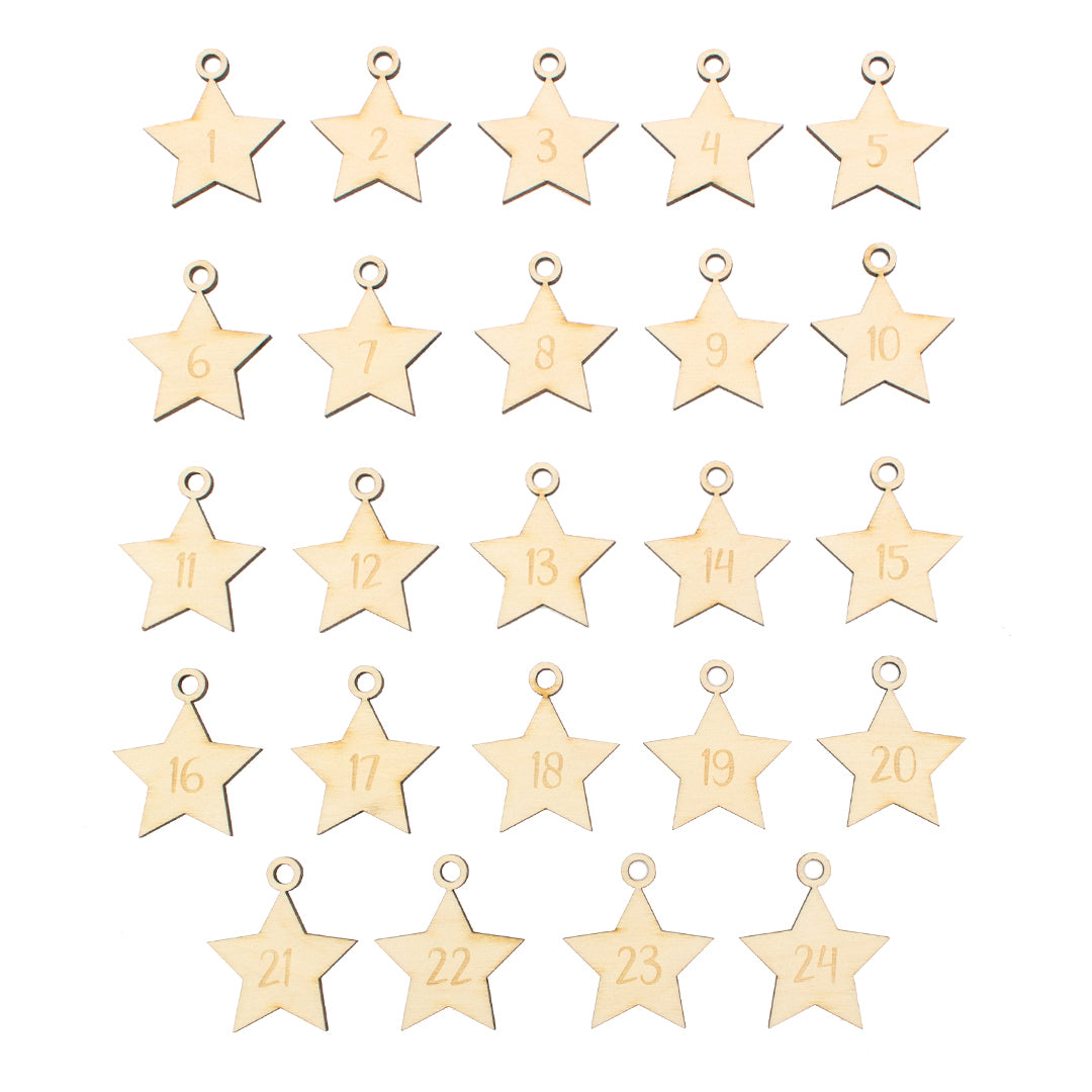 Adventskalender Zahlen Anhänger 1-24 zum Basteln Adventskalendersäckchen Nummern Sterne Holz