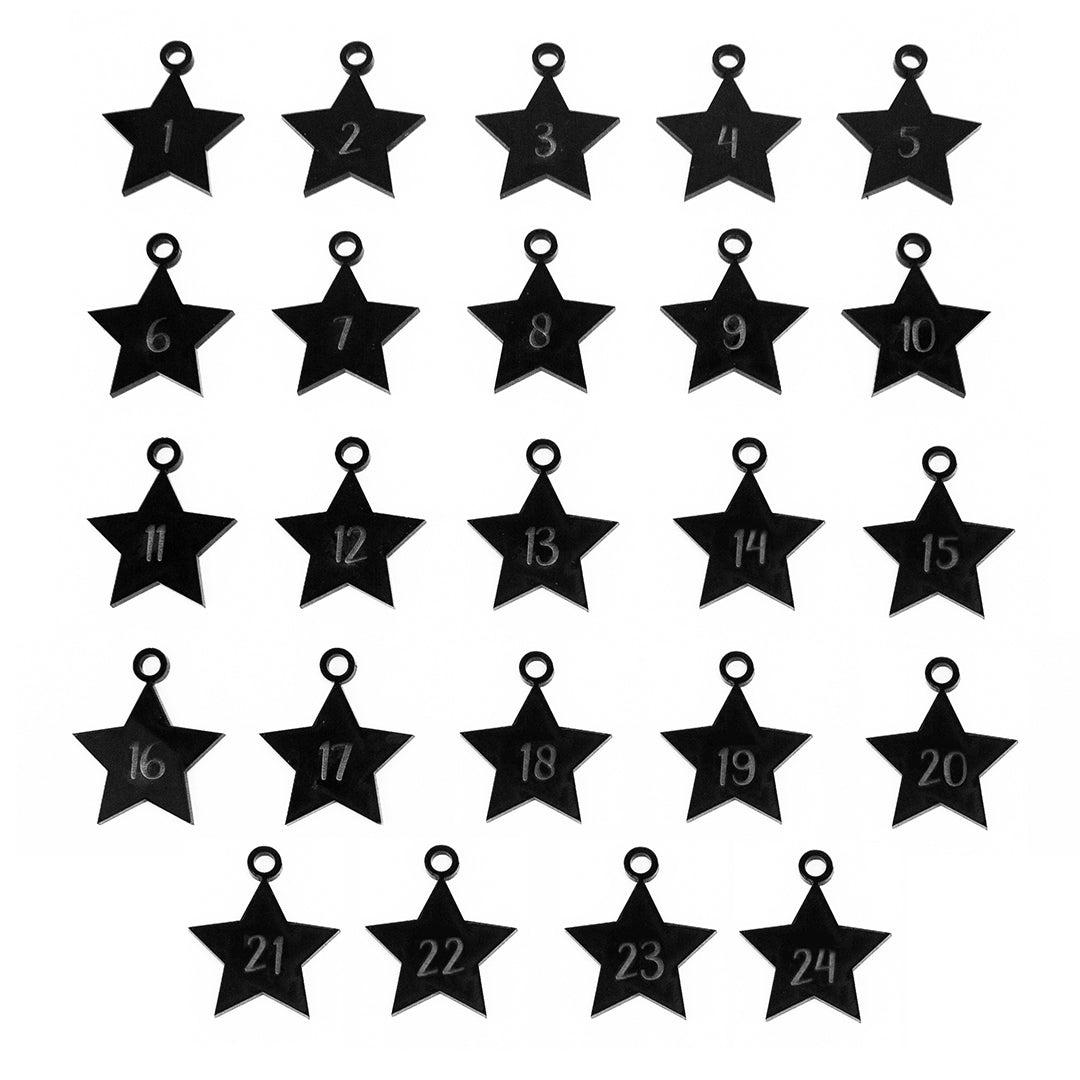 Adventskalender Zahlen Anhänger 1-24 zum Basteln Adventskalendersäckchen Nummern Sterne schwarz