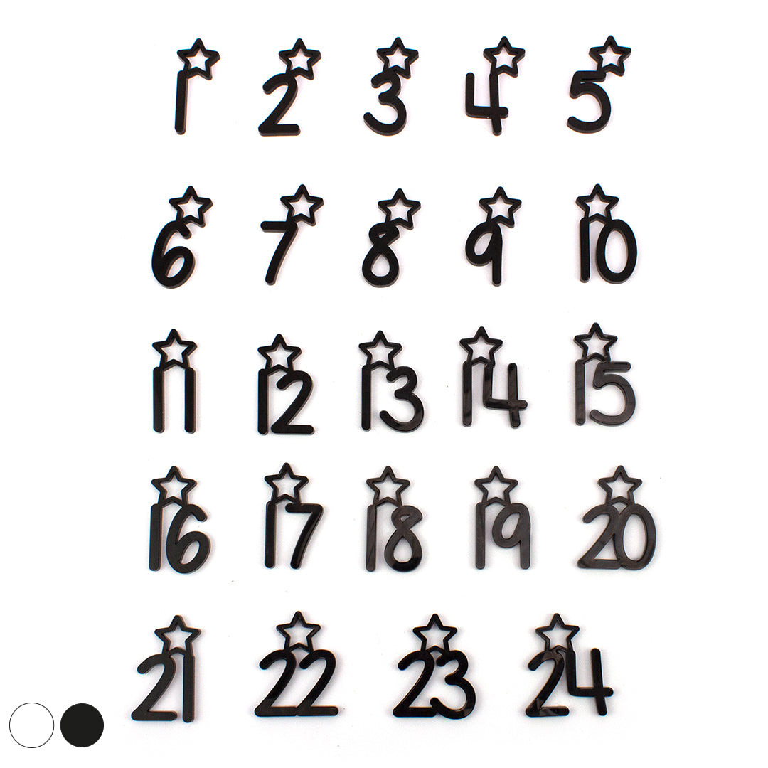 Adventskalender Zahlen Anhänger 1-24 zum Basteln Adventskalendersäckchen Nummern Sternchen schwarz/weiß