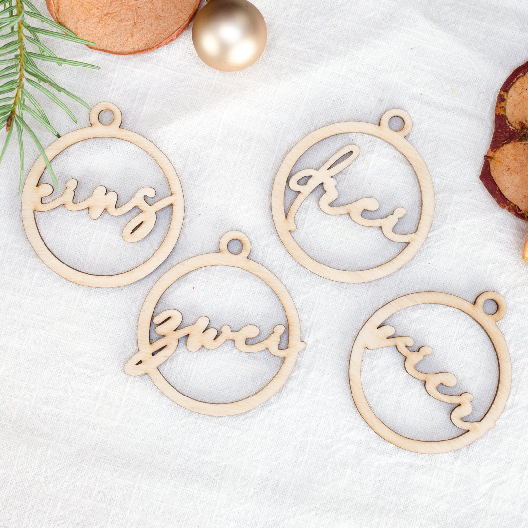 Adventskranz Zahlen Holz Anhänger 1-4 für Kerzen Adventszahlen Schreibschrift