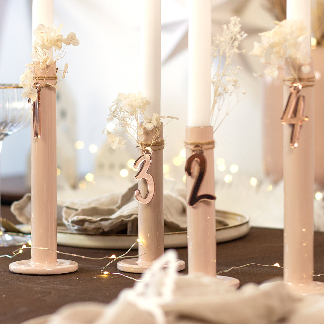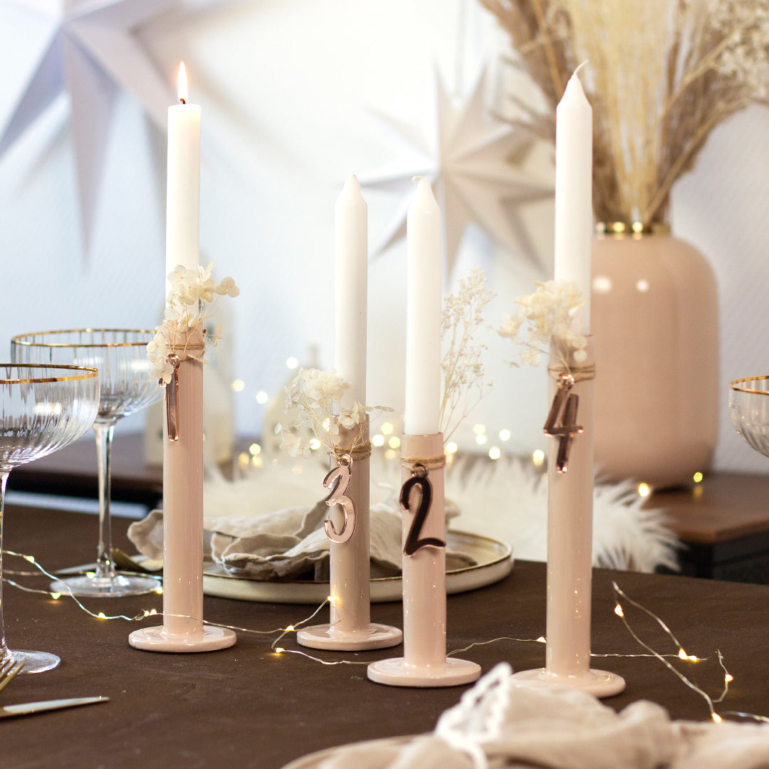 Adventskranz Zahlen Holz Anhänger 1-4 für Kerzen Adventszahlen Verspielt Silber/Roségold