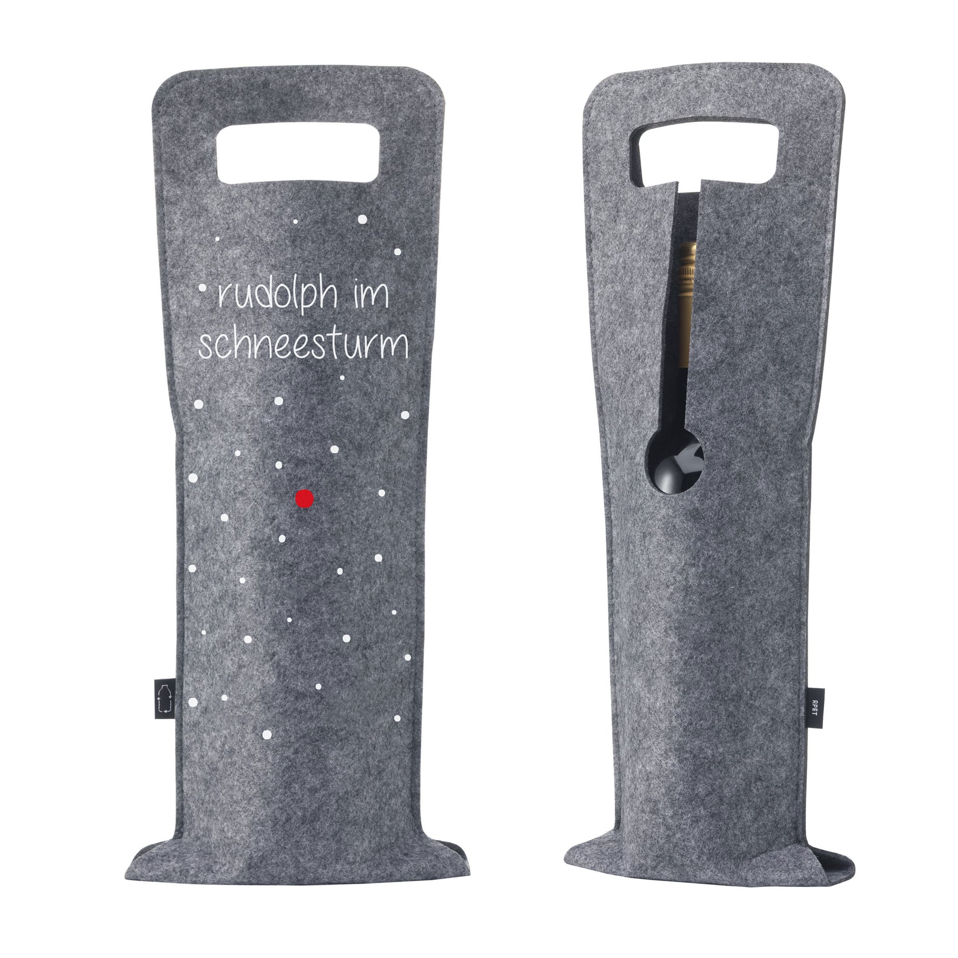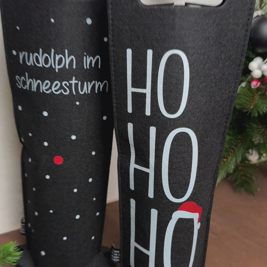 Geschenkverpackung für Wein 2er Set Flaschentasche Geschenktasche für Weinflaschen aus Filz Geschenktüte Weihnachten Hohoho / Rudolph - grau