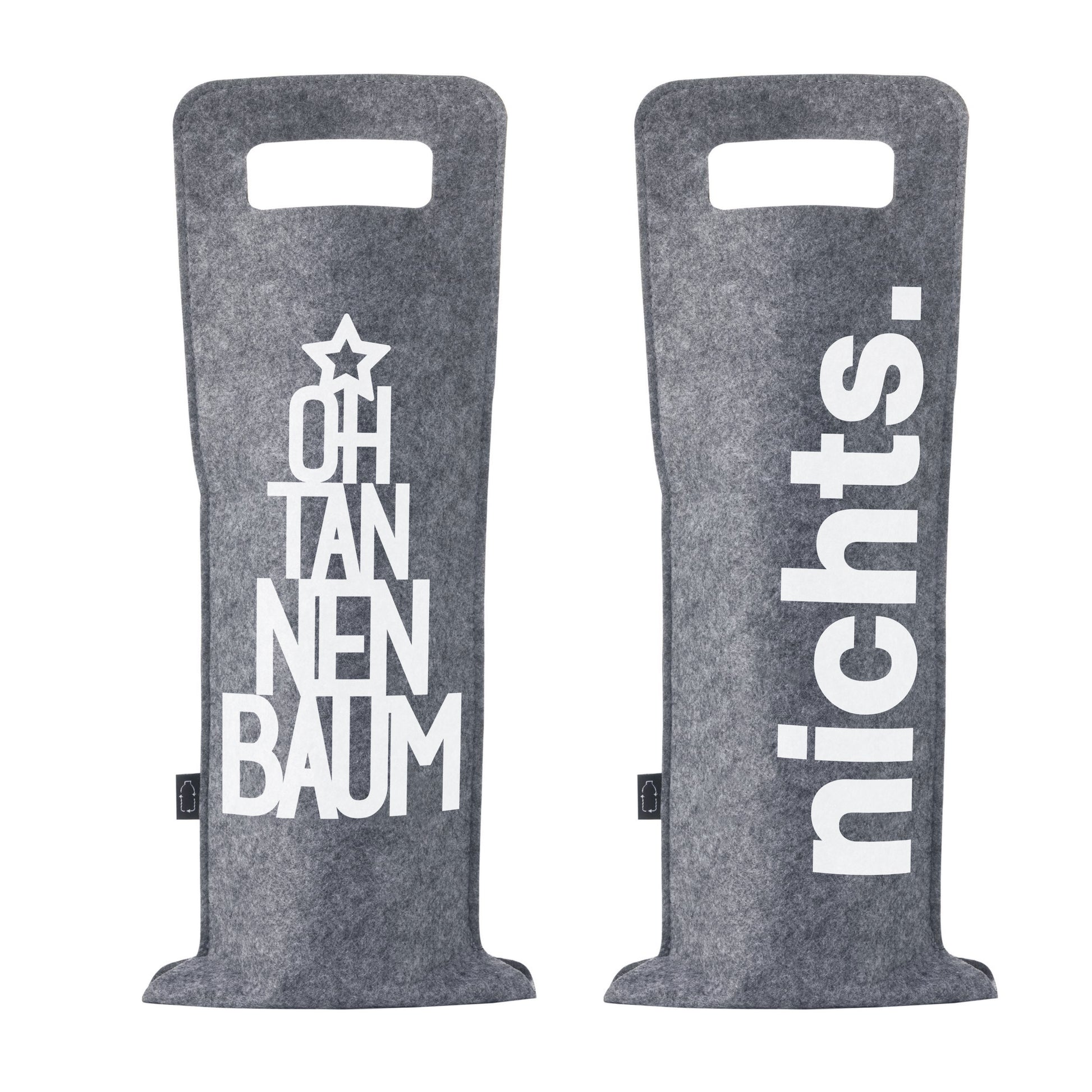 Geschenkverpackung für Wein 2er Set Flaschentasche Geschenktasche für Weinflaschen aus Filz Geschenktüte Weihnachten Oh Tannenbaum / Nichts - grau