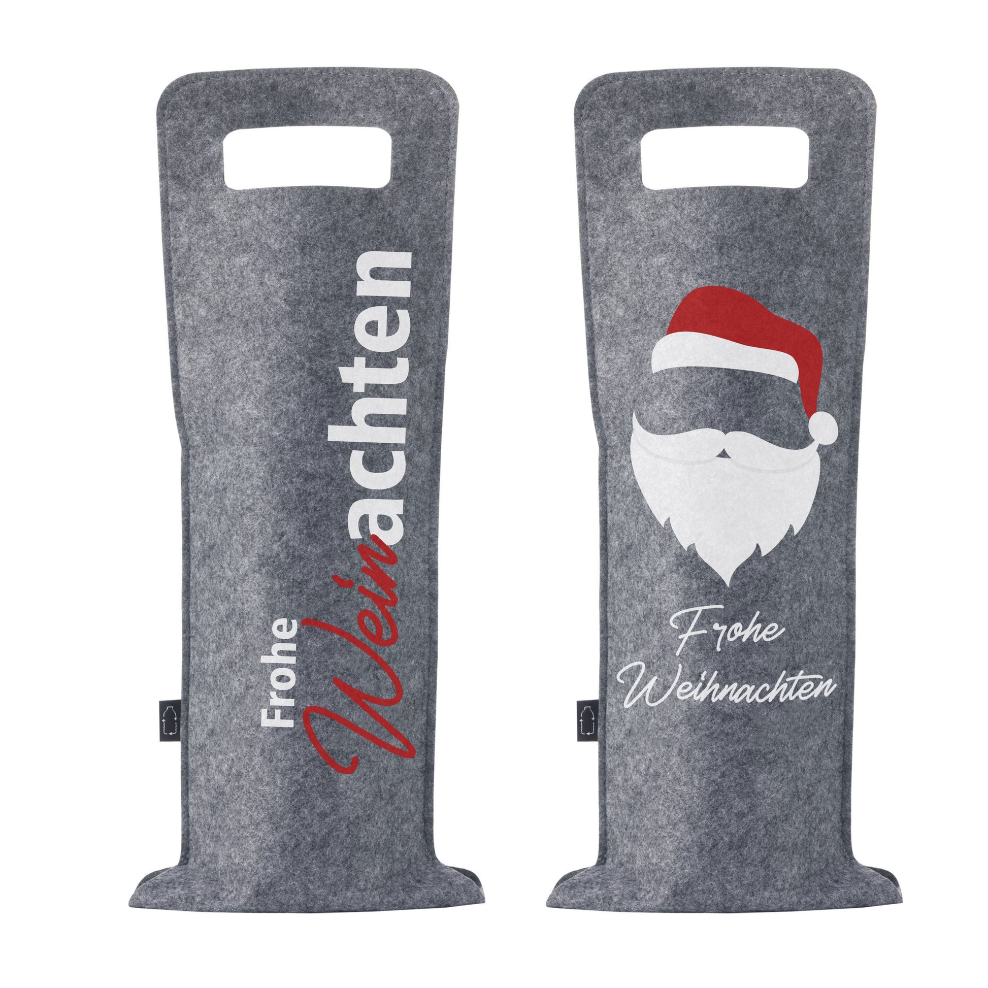Geschenkverpackung für Wein 2er Set Flaschentasche Geschenktasche für Weinflaschen aus Filz Geschenktüte Weihnachten Weinachten / Santa - grau