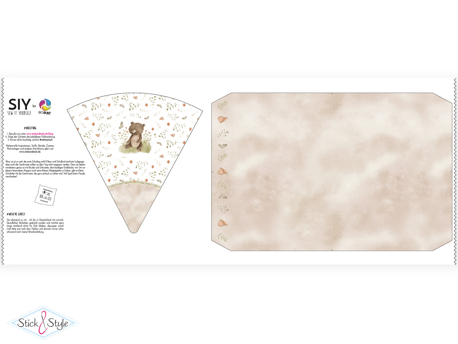 Eine Anleitung zum Nähen der Schultüte findest du kostenlos bei uns im Blog unter https://www.stickandstyle.de/blog/uebersicht/siy-anleitung-schultuete