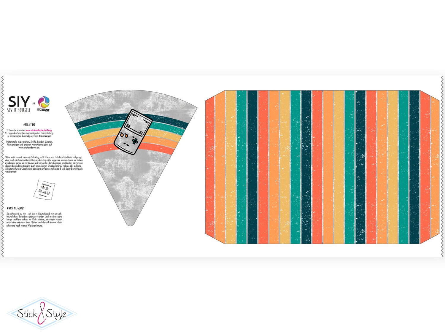 Eine Anleitung zum Nähen der Schultüte findest du kostenlos bei uns im Blog unter https://www.stickandstyle.de/blog/uebersicht/siy-anleitung-schultuete