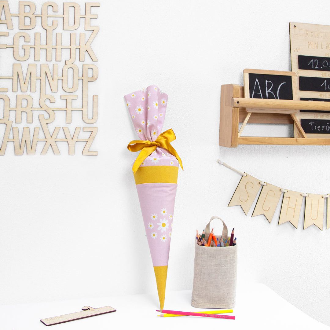 Geschwister Schultüte auch DIY aus Stoff - Gänseblümchen - rosa
