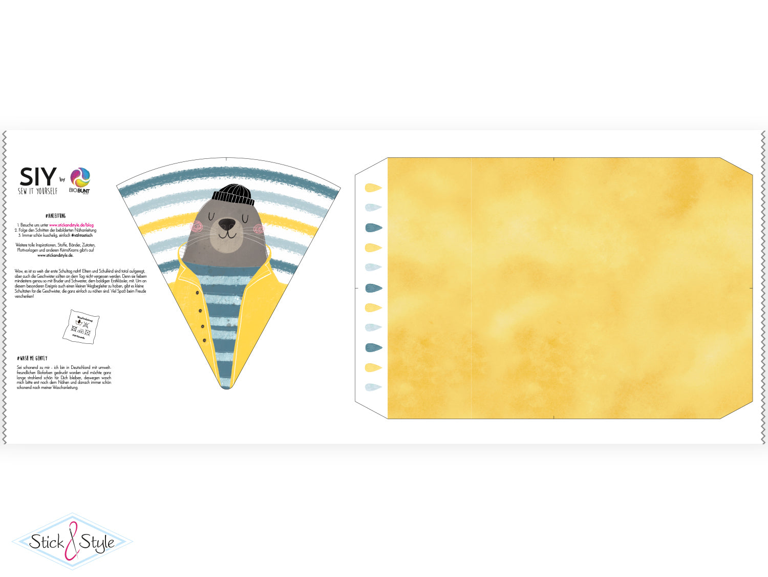 Eine Anleitung zum Nähen der Schultüte findest du kostenlos bei uns im Blog unter https://www.stickandstyle.de/blog/uebersicht/siy-anleitung-schultuete