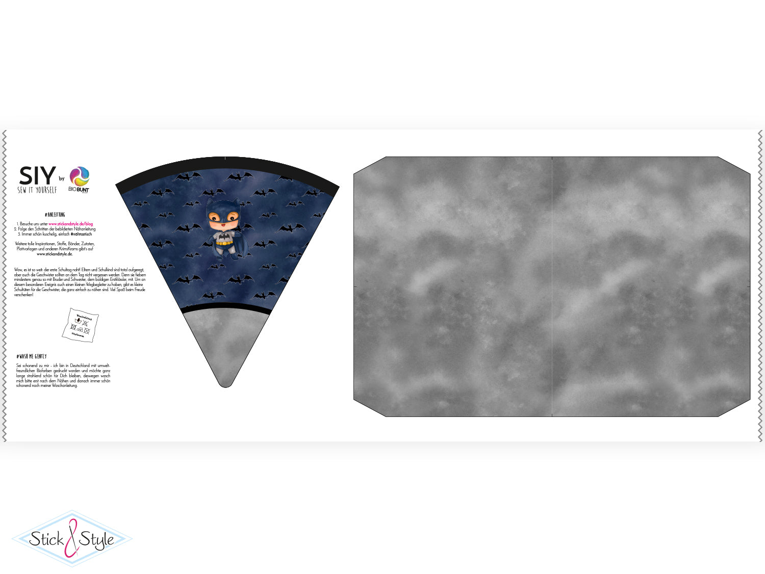 Eine Anleitung zum Nähen der Schultüte findest du kostenlos bei uns im Blog unter https://www.stickandstyle.de/blog/uebersicht/siy-anleitung-schultuete