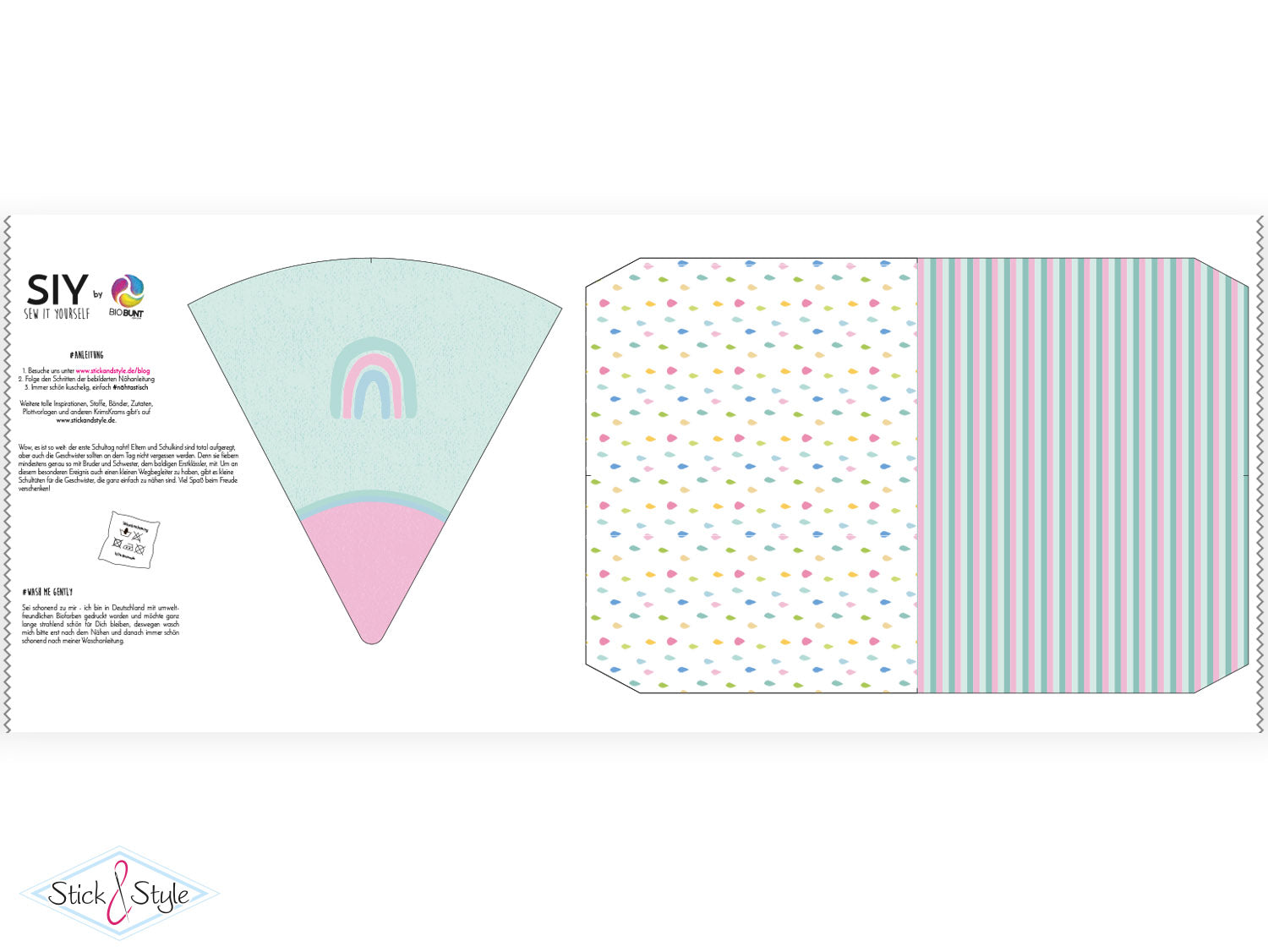 Eine Anleitung zum Nähen der Schultüte findest du kostenlos bei uns im Blog unter https://www.stickandstyle.de/blog/uebersicht/siy-anleitung-schultuete