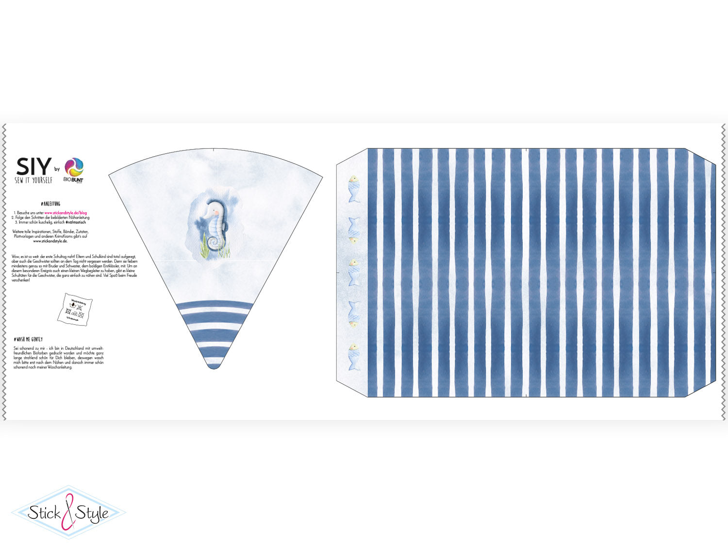 Eine Anleitung zum Nähen der Schultüte findest du kostenlos bei uns im Blog unter https://www.stickandstyle.de/blog/uebersicht/siy-anleitung-schultuete