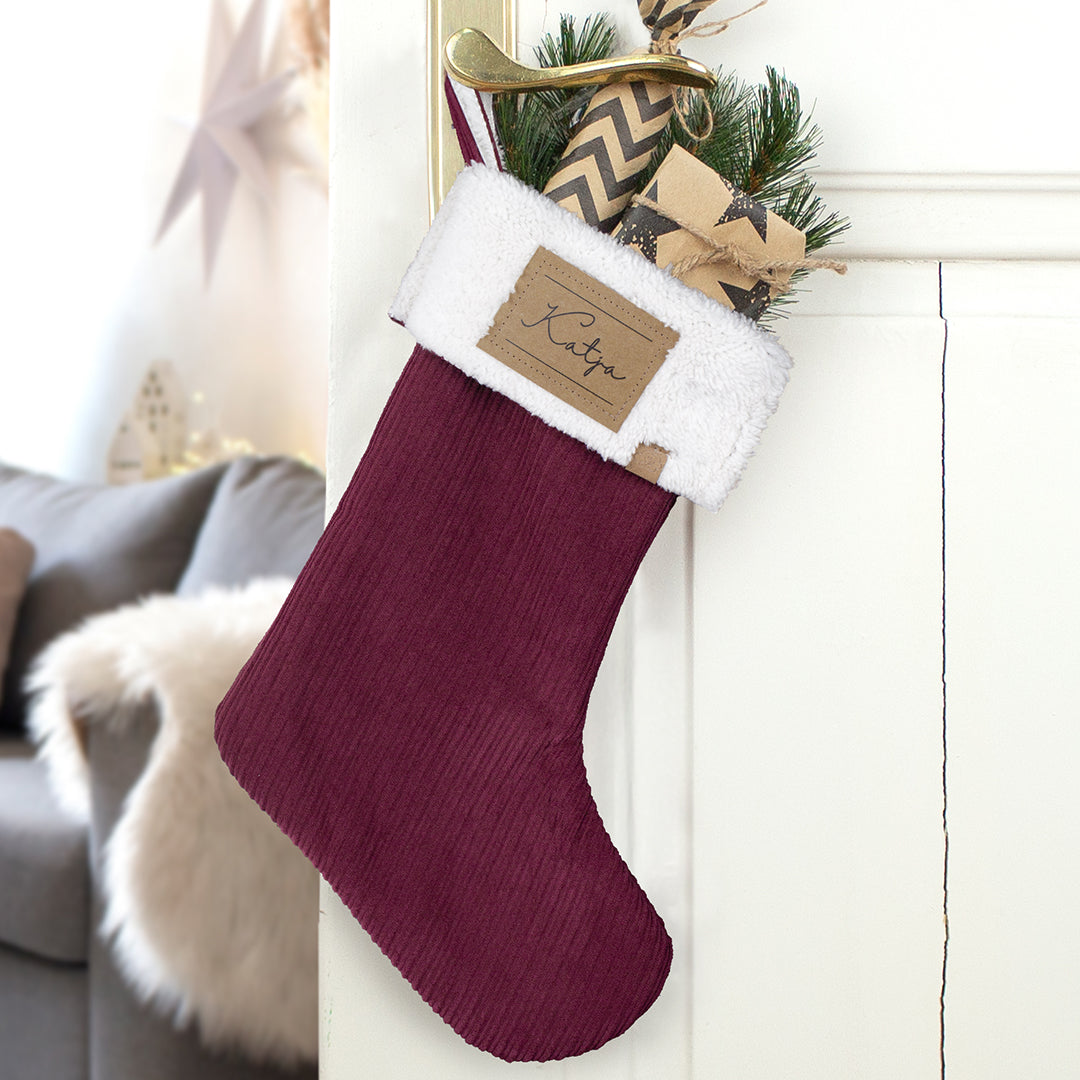 Nikolausstrumpf zum Befüllen Weihnachtssocke personalisiert mit Name Etikett - bordeaux