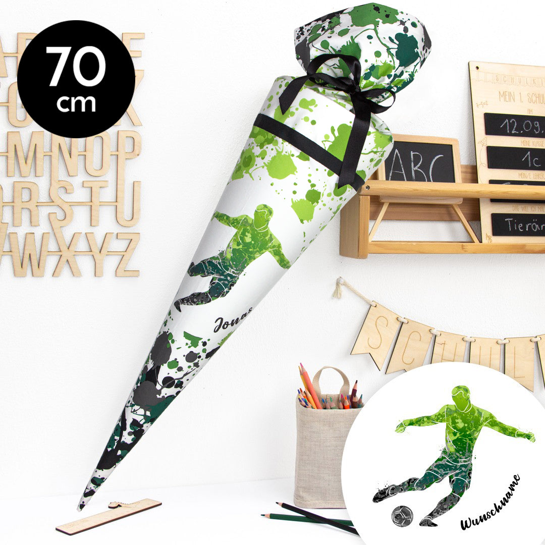 Schultüte aus Stoff mit Wunschname - Fußballspieler - 70 cm
