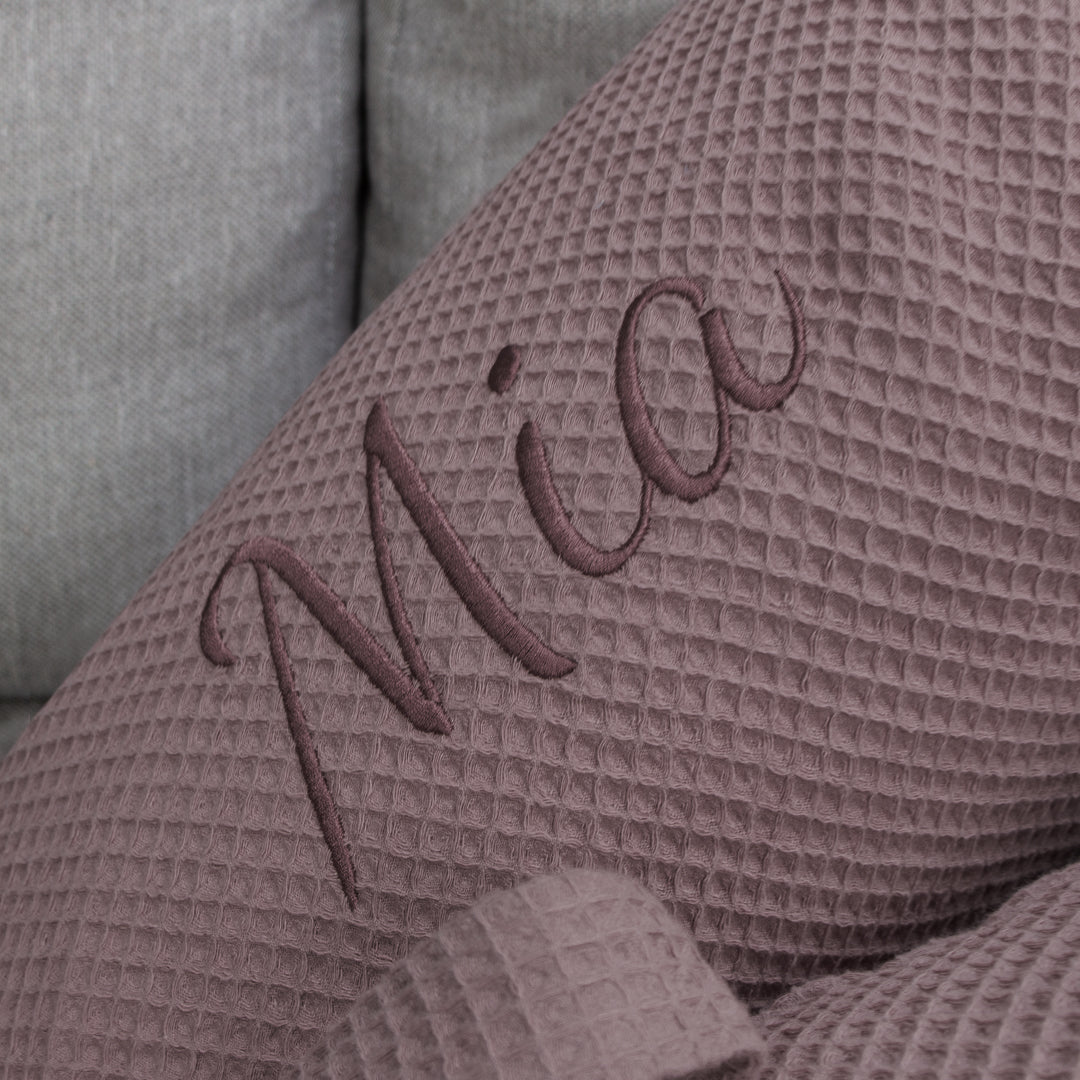 Stillkissen Set Kissen inkl. Bezug XXL Wunschname bestickt Seitenschläferkissen 190 cm Waffelpiqué 100% Baumwolle Boho