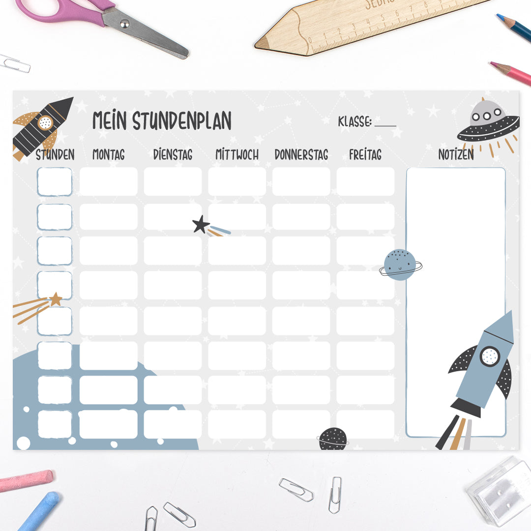 Ab jetzt ist dein Schultag perfekt organisiert und nichts gerät mehr in Vergessenheit! Unser toller Stundenplan im A4 Format bietet ausreichend Platz zum Beschriften und passt perfekt ins Schulheft oder an den Kühlschrank. Die großen Felder bieten ausreichend Platz zum Beschriften – ideal auch als Geschenk zum Schulanfang oder zum Befüllen deiner Schultüte!