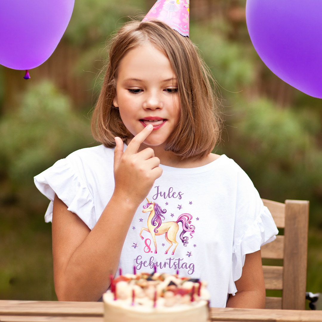 Bügelbild Geburtstag - T-Shirt - Glitzer Einhorn