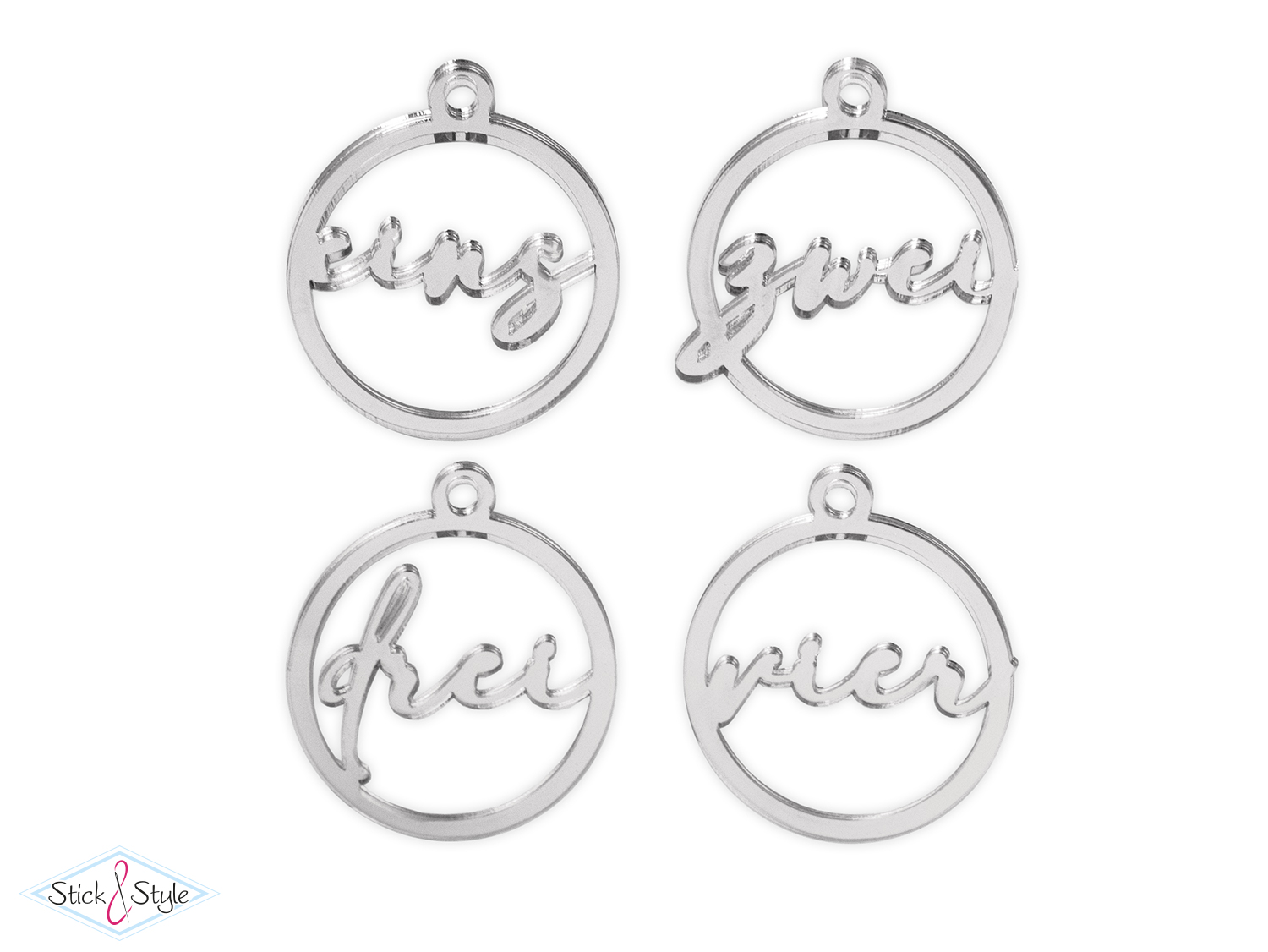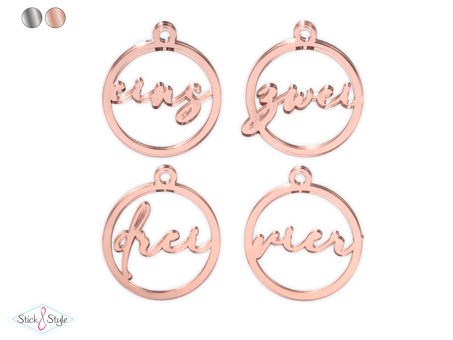 | Lieferumfang: | 4 Acryl-Anhänger mit den Zahlen 1-4 |