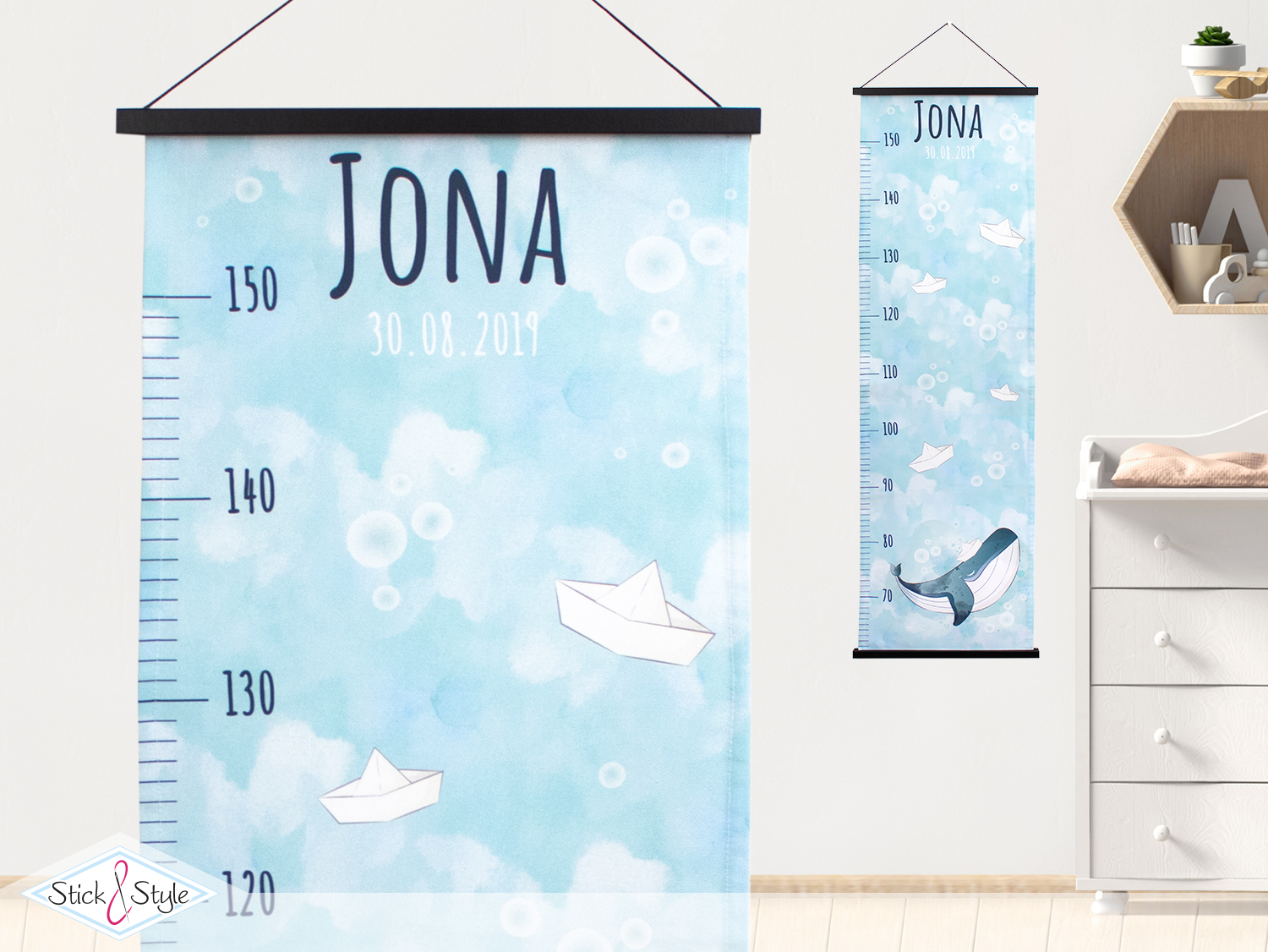 Und das Beste? Du kannst die wunderschönen Messlatten sogar mit dem Namen und dem Geburtsdatum deines Kindes personalisieren lassen! Über 10 Designs stehen dir zur Auswahl und ermöglichen dir so, ganz individuell zu entscheiden, welche Messlatte am besten zu der restlichen Kinderzimmerdeko passt. Boho Waldtiere, Unterwasserwelt oder doch lieber hoch hinaus ins Weltall? Du entscheidest! Die Magnetleisten zum Aufhängen und den entsprechenden Textilmarker kannst du optional direkt dazu bestellen. Psst! Die Messleisten eignen sich auch toll als Geschenk zur Geburt, Taufe oder zum Geburtstag!