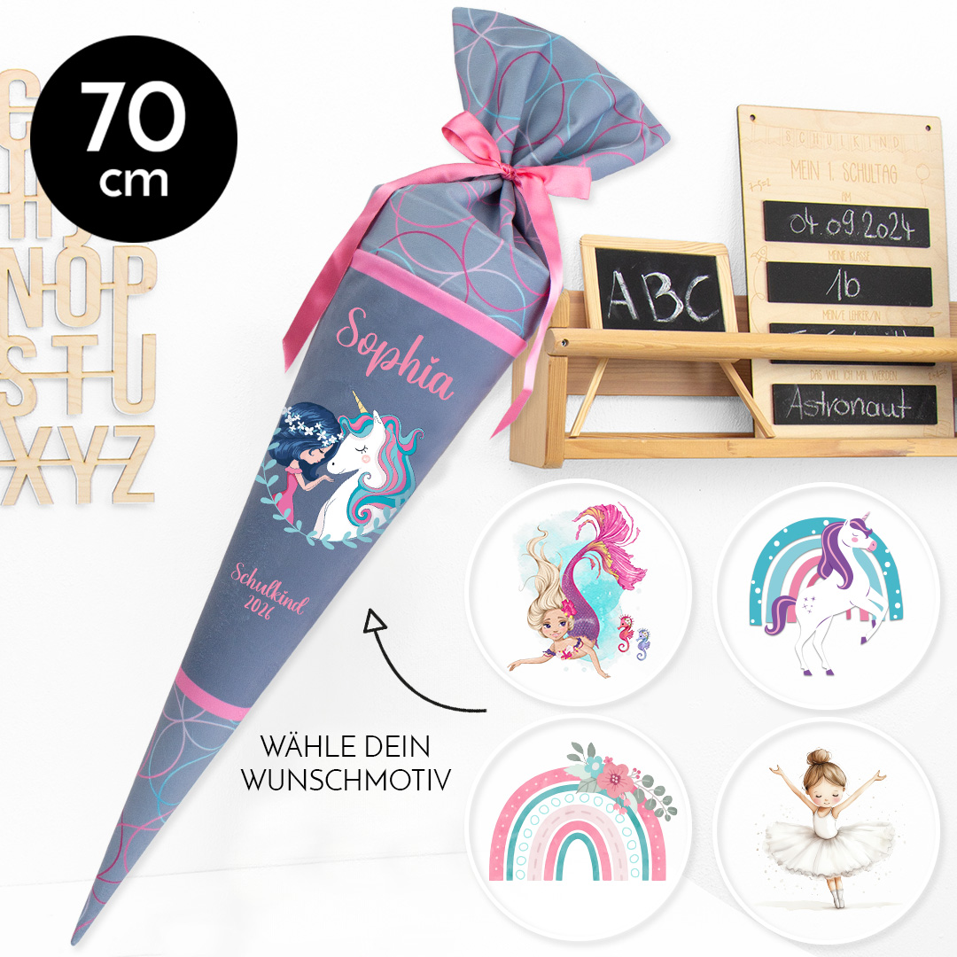 Die neue Kollektion 2025 ist da! Deine Suche nach der perfekten Schultüte endet hier und jetzt: Mit unseren Schultüten aus kuscheligem Velvet Stoff mit Wunschmotiv kannst du dir dein Lieblingsmotiv passend zum Schulranzen einfach selbst aussuchen. Damit der erste Schultag etwas ganz Besonderes wird, wird jede Schultüte von uns personalisiert und mit deinem Wunschnamen versehen.