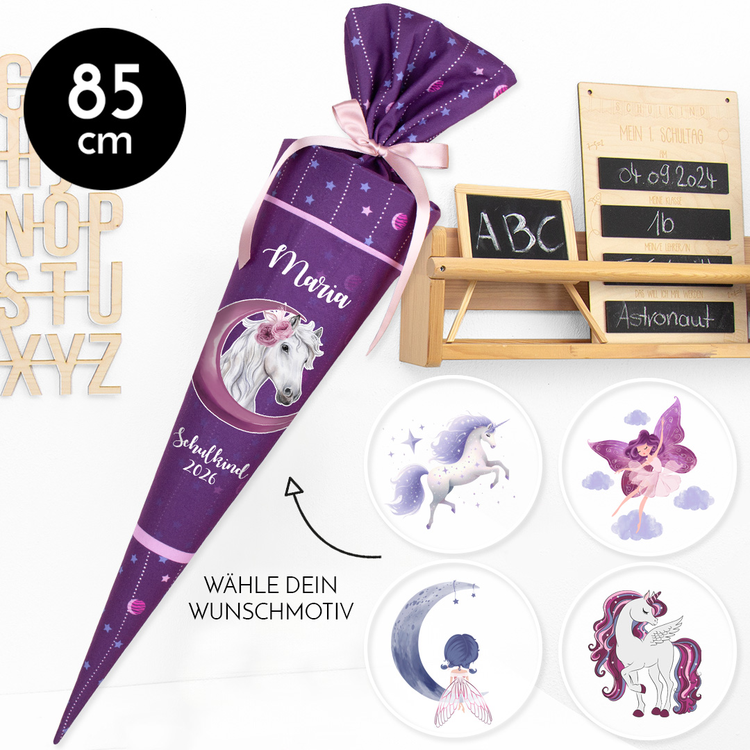 Die neue Kollektion 2025 ist da! Deine Suche nach der perfekten Schultüte endet hier und jetzt: Mit unseren Schultüten aus kuscheligem Velvet Stoff mit Wunschmotiv kannst du dir dein Lieblingsmotiv passend zum Schulranzen einfach selbst aussuchen. Damit der erste Schultag etwas ganz Besonderes wird, wird jede Schultüte von uns personalisiert und mit deinem Wunschnamen versehen.