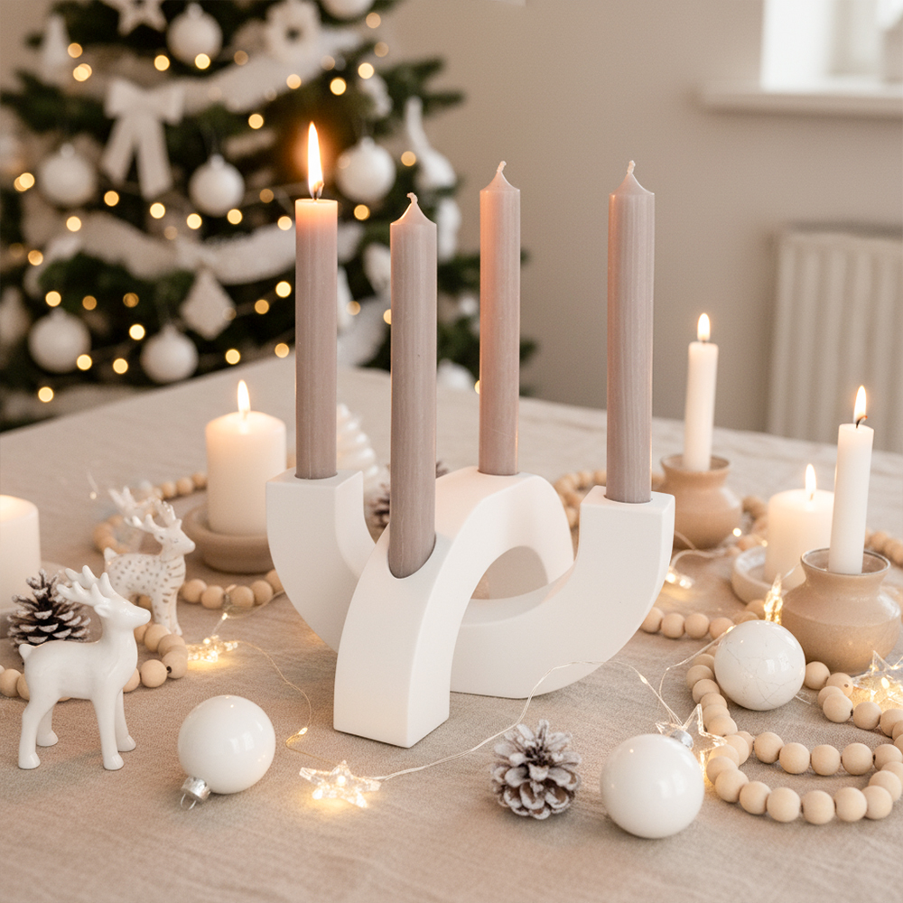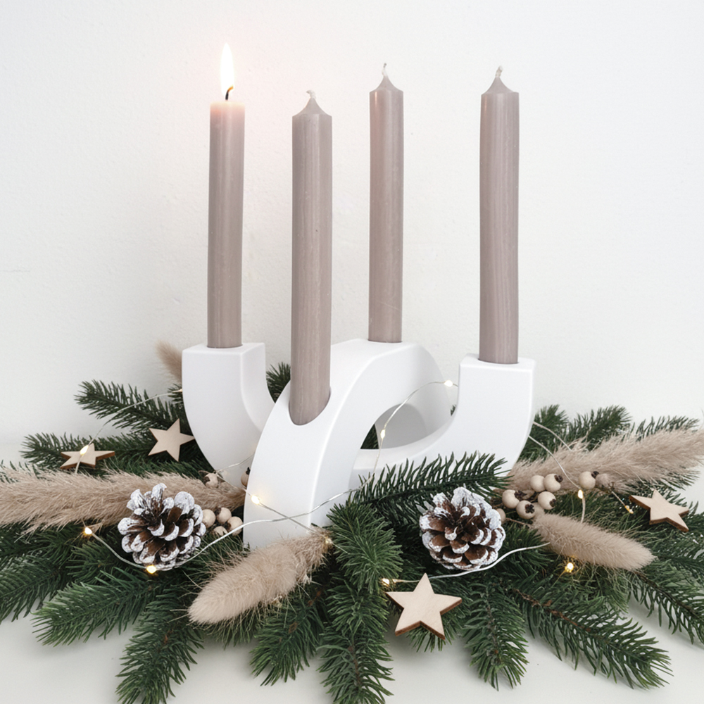Adventskranz modern Kerzenhalter aus Gießbeton minimalistisch Weihnachtsdeko Halbkreis weiß Boho